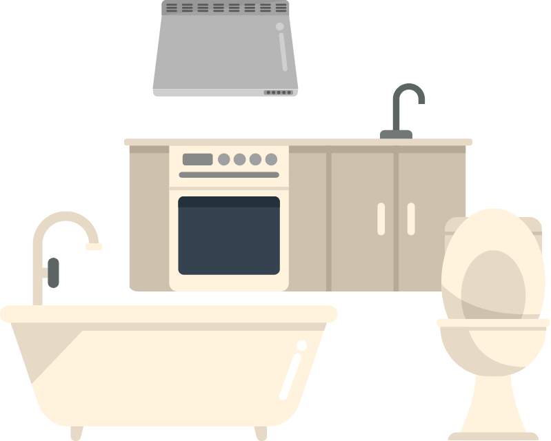 毎日使うキッチン・レンジフード・浴室・トイレは、食べカスや油汚れ、皮脂・石けんカスなどの汚れが付着しやすく掃除も大変。